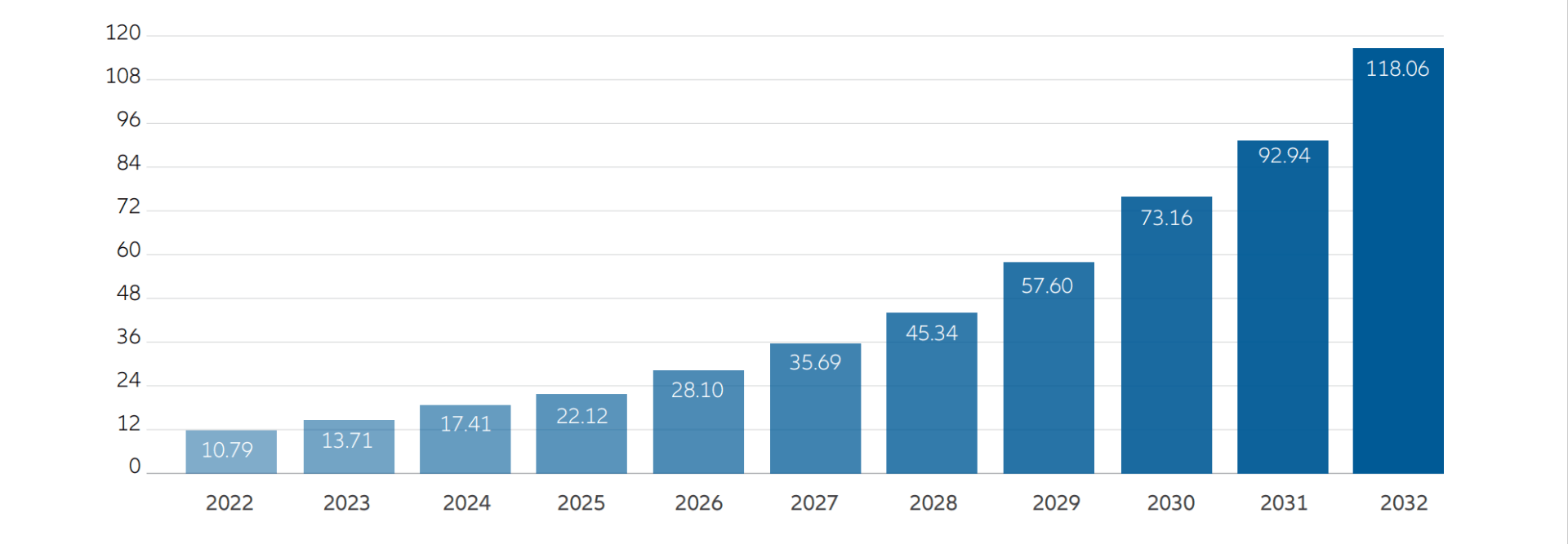 Source: Precedence Research, December 2022. Compound annual growth rate = 27.02% from 2023-2032.